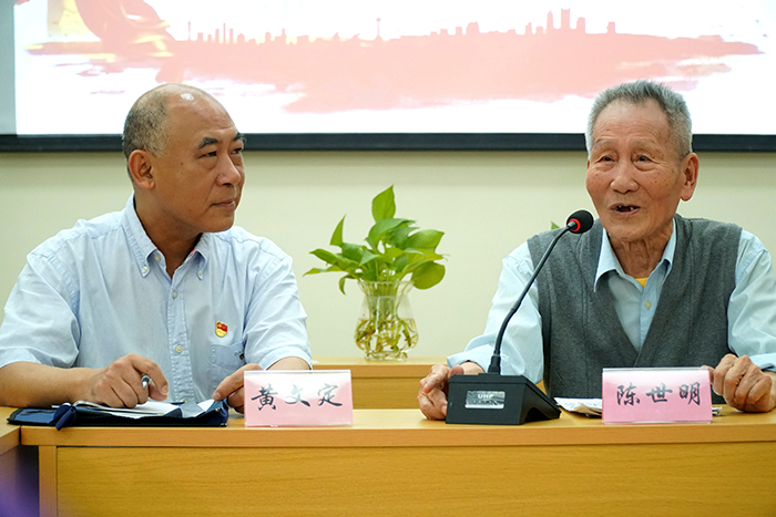 講座中,95歲高齡的陳老講述了革命戰爭年代,福州解放的歷程及自己一生幾經生死考驗卻從未言棄的故事。因為心中充滿著“革命理想高于天”的豪邁情懷,因為理想信念堅如磐石,入黨71年,陳世明同志始終不忘初心,牢記使命,把黨的事業當作自己畢生的追求。這一堂生動的革命歷史教育課,深深觸動了在場所有人。